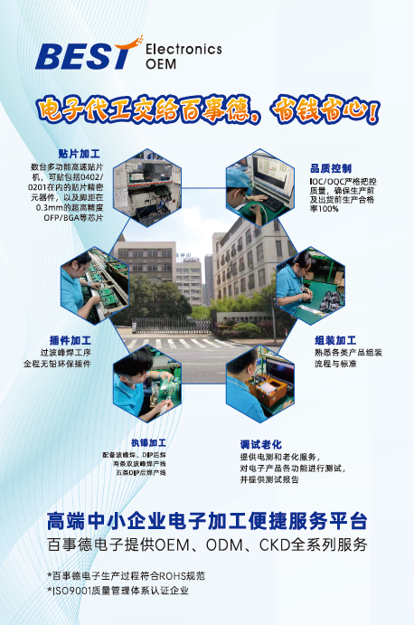 盛夏5月,热辣滚烫!武汉中国光谷电子展会拉开帷幕,百事德电子作为珠三角最具影响力的中小企业电子产品加工、代工平台之一,也参加了这一盛事!百事德电子在珠三角地区深耕中小企业电子产品加工、代工近十多年,已在珠三角地区取得良好的质量口碑,为百事德电子加工、代工业务幅射到中部、西南部地区打好了基础。借着武汉电子展会这个契机,先让中部地区企业认识、了解百事德电子加工、代工,也让百事德电子有机会服务好更多的客户。帮助各新老客户做好加工、代工服务,解决客户质量、交期的后顾之忧,让客户更专注于产品研发与开拓市场,业务更上一个台阶!